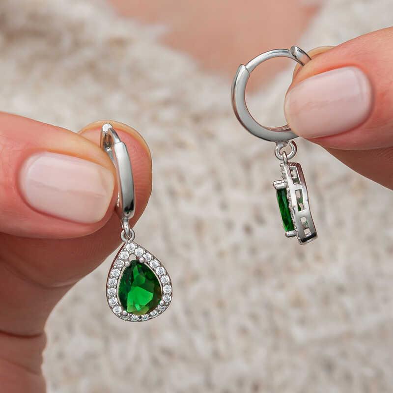 Silver Green Zircon Stone Drop Women's Earrings The color green symbolizes nature, freshness and renewal. It is also associated with peace and balance. Zircon stone generally means purity, loyalty and devotion. Silver green zircon stone drop women's earrings are a perfect option as a birthday gift, Valentine's Day gift or a gift for mothers on special occasions. Silver hoop women's earrings are made of 925 sterling silver. Rhodium plated silver. Rhodium plated silver drop women's earrings preserve their shine for a long time and oxidation is delayed. Like all women's earrings, silver drop women's earrings are produced by hand. Due to silver and precious stones, there may be a ± 10% deviation in the average product weight. Width: 1.00 cm Earring Diameter: 2.60 cm Average Weight: 4.00 gr.