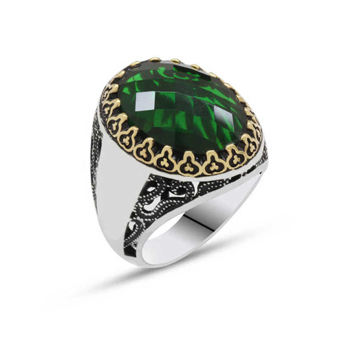 Silver Green Zircon Stone Men's RingStones found in nature come in many types. Some of these stones are also known as healing stones. One of these stones believed to have healing properties is the agate stone. It provides warmth when it comes into contact with the body. Thanks to this feature, it helps reduce pain and tension in the body. Agate stone is of great importance for skin diseases. A ring made of agate stone on silver is an accessory with countless health benefits that you can use at any time of the day. You can gift this ring to yourself or your loved ones on your birthday, Father's Day or on special occasions. The zircon stone men's ring is made of 925 sterling silver. The silver is oxidized. Oxide-coated silver men's rings preserve their shine for a long time. As with all men's rings, the silver green zircon men's ring is handmade. Due to the silver and precious stones, there may be a ±10% deviation from the stated average product weight.Average Weight: 14.00 gr.