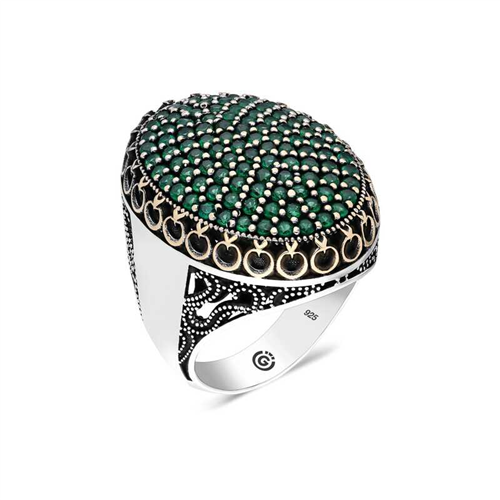 Silver Green Zircon Stone Oval Men's Ring This men's ring model, made of zircon green stone stones on silver, is a stylish accessory that you can use at any time of the day. You can gift this ring to yourself or your loved ones on your birthday, Father's Day or special occasions. The green stone men's ring model is made of 925 sterling silver. Oxide coating is applied on the silver. Silver men's rings with oxide coating preserve their shine for a long time. As with all men's rings, the silver zircon green stone men's ring model is also handmade. Due to silver and precious stones, there may be ± 10% deviation in the average product weight. Width: 2.30 cm Length: 3.00 cm Avg. Weight: 22.00 gr.