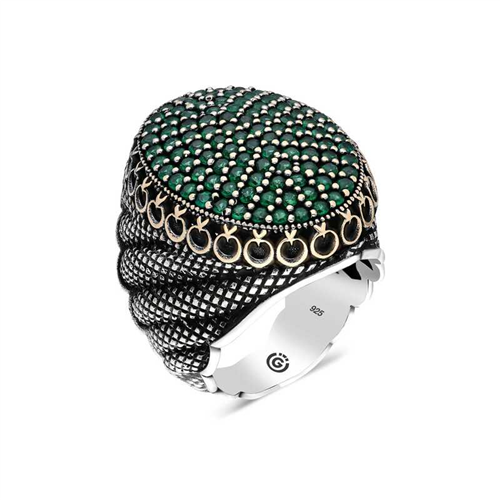 Silver Green Zircon Stone Oval Men's Ring This men's ring model, made of zircon green stone stones on silver, is a stylish accessory that you can use at any time of the day. You can gift this ring to yourself or your loved ones on your birthday, Father's Day or special occasions. The green stone men's ring model is made of 925 sterling silver. Oxide coating is applied on the silver. Silver men's rings with oxide coating preserve their shine for a long time. As with all men's rings, the silver zircon green stone men's ring model is also handmade. Due to silver and precious stones, there may be ± 10% deviation in the average product weight.Width: 2.30 cmLength: 3.20 cmAvg. Weight: 26.50 gr.