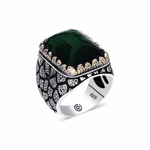 Silver Green Zircon Stone Square Men's RingThis men's ring model, made of Green Zircon stone on silver, is a stylish accessory that you can use at any time of the day. You can gift this ring to yourself or your loved ones on your birthday, Father's Day or special occasions. The green stone men's ring model is made of 925 sterling silver. Oxide coating is applied on the silver. Oxide coating preserves its shine for a long time. As with all men's rings, the silver Green Zircon stone Square men's ring model is also handmade. Due to silver and precious stones, there may be a ± 10% deviation from the average product weight.Average Weight: 17.00 gr.
