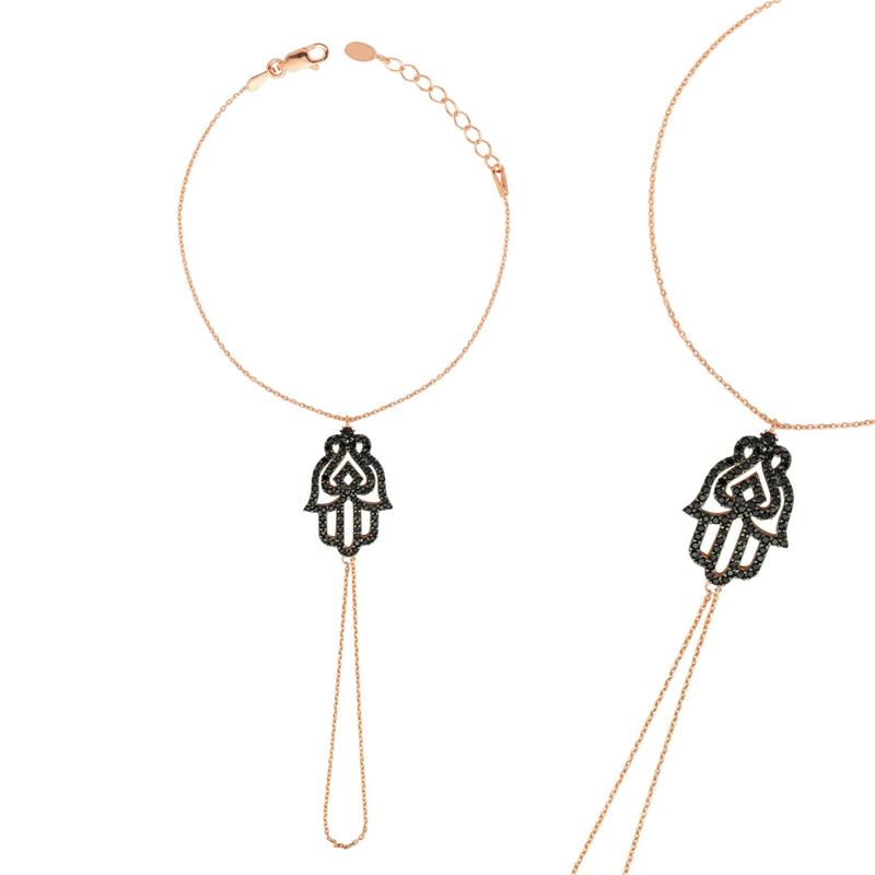 Silver Rose Fatima Hand Shahmaran Women's Bracelet Shahmarans Gumush