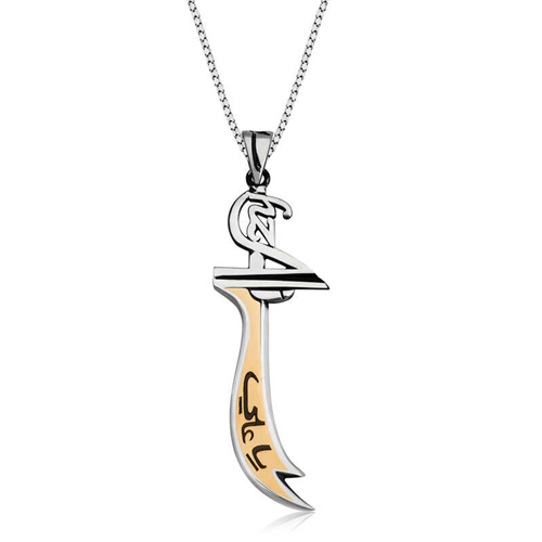 Silver Hz. Ali Zulfiqar Sword Necklace Hz. Ali showed great heroism in the Battle of Uhud. His sword broke while trying to protect the Prophet Muhammad (pbuh) in the battle. Seeing this, the Prophet gave him his own sword, Zulfiqar. With the sharpness of the sword, he split other swords in half and wrote epics in battles. Hz. Ali is now in battles with his Zulfiqar sword... It is known that the sword was taken to heaven after Hz. Ali's death. According to another narration, it is known to be between the Tigris and Euphrates rivers. The person who will rule the armies of Islam will own that sword and be the commander-in-chief of the armies. You can choose this stylish necklace as a birthday gift, Valentine's Day gift or a gift on special occasions. The necklace is made of 925 sterling silver. Oxide coating on silver. Oxide coating preserves its shine for a long time and gives the silver its black color. As with all necklaces, this silver Zulfiqar sword necklace is also entirely handmade. Due to silver and precious stones, there may be a ± 10% deviation from the average product weight. Width: 2.00 cm Length: 6.50 cm Average Weight: 13.00 gr. Chain Length: 55.00 cm