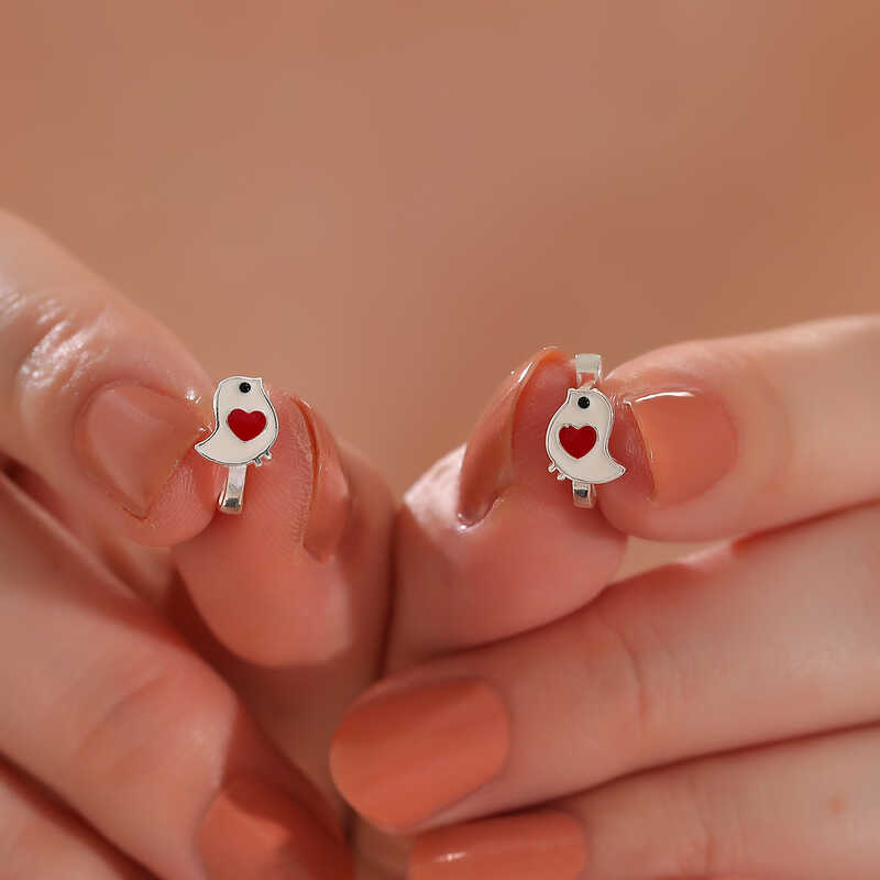 Silver Hearted Bird Children's EarringsWe designed our sweetest, warm, lovely animals friends for you. This stylish earring with its sparkling and different design is made of 925 sterling silver. Rhodium plated silver. Rhodium plated silver children's earrings preserve their shine for a long time and oxidation is delayed. As with all silver earrings, the entire silver hearted bird children's earrings are produced by hand. Due to silver and precious stones, there may be ± 10% deviation from the average product weight.Earring Width: 1.00 cmEarring Length: 1.20 cmAverage Weight: 1.30 gr