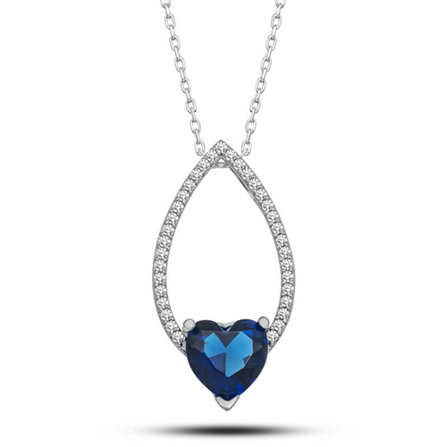 Silver Heart Blue Stone Drop Women's Necklace You will love using this necklace, which reminds me of stars with its sparkling stones, that you can choose in everyday life, special occasions and nights. This timeless silver necklace with stones that will never go out of style is waiting for you, appealing to all women who want to create a stylish look. Silver heart blue stone drop women's necklace is a perfect option for a birthday gift, Valentine's Day gift or as a gift for mothers on special occasions. Heart blue stone drop women's necklace is made of 925 sterling silver. Rhodium plated silver. Rhodium plated women's necklaces preserve their shine for a long time and delay oxidation. The stones on it are zircon. The average chain length is 45 cm. Like all women's necklaces, the silver heart blue stone drop women's necklace is also handmade. Due to silver and precious stones, there may be a ± 10% deviation in the average product weight. Width: 1.40 cm Length: 2.60 cm Average Weight: 3.60 gr.