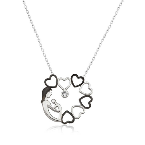Silver Heart Circle Mother Child Women's Necklace It is a special design that represents the love between a child and a mother. The most meaningful gift you can buy to show your devotion to your mother will be a heart circle mother child necklace. This specially designed heart mother child necklace for your mother is made of 925 sterling silver. Rhodium plated silver. Rhodium plated silver heart circle mother child women's necklace models preserve their shine for a long time and oxidation is delayed. The stone on the necklace is zircon. The average silver chain length is 45 cm. The silver heart circle mother and child necklace is handmade. Due to silver and precious stones, there may be a ± 10% deviation in the average product weight. Width: 2.00 cm Length: 2.00 cm Average Weight: 2.50 gr.