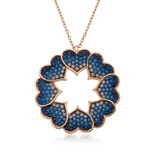 Silver Heart Circle Women's Necklace You can give your loved one a meaningful and beautiful gift with a heart-shaped women's necklace, the symbol of love and affection. On Valentine's Day, when everyone around the world says words of love to each other, you can gift your beloved this heart circle necklace that declares your love. Silver heart circle women's necklace is made of 925 sterling silver. Rose gold plated on silver. Rose gold plated silver women's necklace models preserve their shine for a long time, give the silver a pink color, and delay oxidation. The stones on the necklace are zircon. The average silver chain length is 45 cm. Like all silver women's necklace models, the silver heart circle necklace model is also handmade. Due to silver and precious stones, there may be ± 10% deviation in the specified product weight. Width: 3.00 cm Length: 3.00 cm Weight: 5.21 gr.