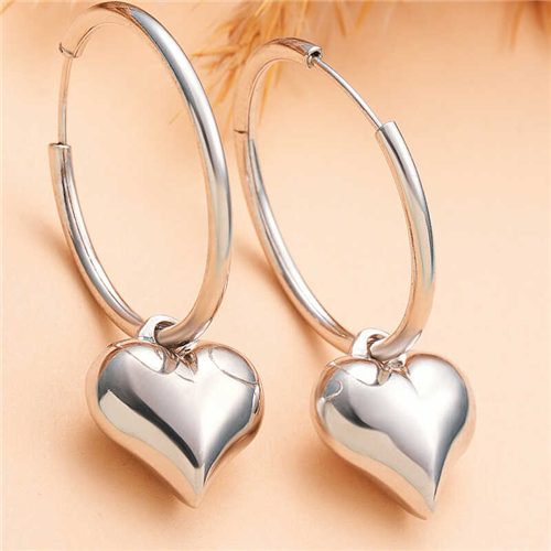 Silver Heart Dangle Earrings for WomenLet your love come to life on the skin of the woman you love with the heart earrings that express love with their heart pattern. This stylish earring model is made of 925 sterling silver. The silver heart earrings that will be worn by both you and your loved ones will be a perfect option as a birthday gift, Valentine's Day gift or a gift for mothers on special occasions. The silver is rhodium plated. Rhodium plated women's earring models preserve their shine for a long time and oxidation is delayed. Like all silver women's earrings, the silver heart dangle earrings are hand-crafted. Due to silver and precious stones, there may be a ± 10% deviation in the average product weight.Heart Width: 1.30 cmHeart Length: 1.40 cmHeart Diameter: 2.30 cmAverage Weight: 5.50 gr.