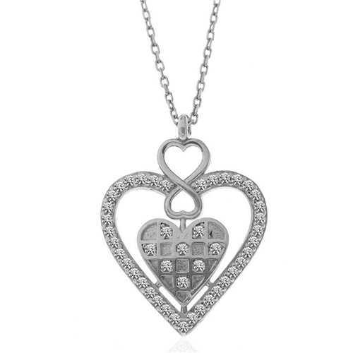 Silver Heart Infinity Women's Necklace One of the most beautiful and meaningful ways to express your eternal love to your lover is with an infinity necklace. With this special necklace that you can gift to your lover and yourself, you can express your eternal love and affection for him/her and send the message that you will be together forever. This wonderful necklace design is made of 925 sterling silver. Rhodium plated silver. Rhodium plated silver necklace models preserve their shine for a long time. The silver chain length of the necklace is 45 cm. This rhodium-plated silver infinity necklace is produced with great effort. Due to silver and precious stones, there may be ± 10% deviation in the average product weight. Width: 1.90 cm Length: 2.50 cm Average Weight: 3.30 gr. Chain Length: 45.00 cm