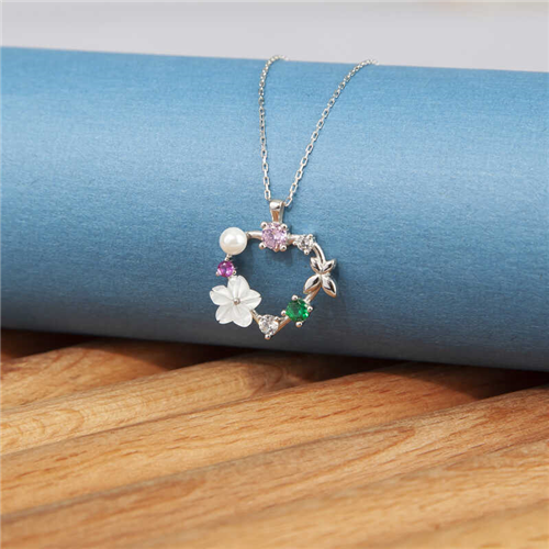 Silver Heart Magnolia Flower Butterfly Women’s Necklace