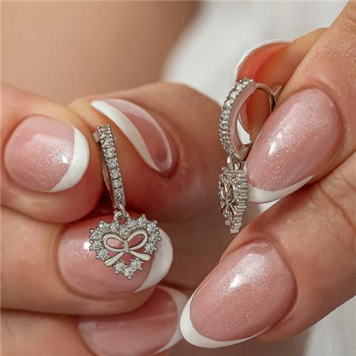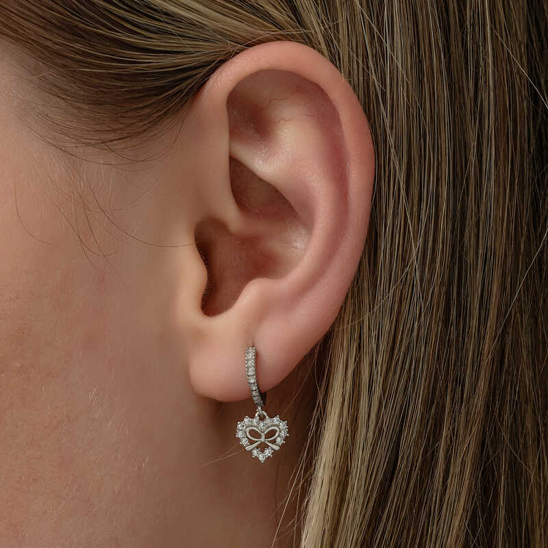 Silver Heart Ribbon Dangle Women's EarringsAppealing to all women who want to create an elegant look, these timeless silver pearl stone earrings are waiting for you. How about adding sparkle to your surroundings with the dazzling sparkle of rhodium-plated silver, pearls and zircon stones... Pearl earrings, which both you and your loved ones will enjoy wearing, will also be one of the best gifts to share your love... Made of 925 sterling silver. Rhodium plating is done on silver. Rhodium-plated products preserve their shine for a long time and oxidation is delayed. All of our products are handmade. Due to silver and precious stones, there may be a ± 10% deviation in product weight.Width: 1 cmLength: 2 cmAverage Weight: 2.22 gr.