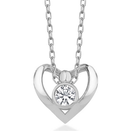 Silver Heart Solitaire Women's Necklace A solitaire necklace that meets in the heart will always remember your love and your first moment of happiness and will accompany your most romantic moments. It will be one of the most meaningful gifts you can give to your loved one with whom you expect a long relationship. You can make your lover happy by gifting it to them on their birthday, Valentine's Day or special days with this special design created to express your romantic love. This necklace full of love is made of 925 sterling silver. The stone on the silver heart solitaire women's necklace is zircon. This women's silver necklace is rhodium plated. Rhodium plated women's necklaces preserve their shine for a long time and delay oxidation. Like all silver necklaces, this silver heart solitaire women's necklace is also handmade. Due to silver and precious stones, there may be ± 10% deviation in product weight. Width: 1.10 cm Length: 1.00 cm Chain Length: 45 cm Average Weight: 2.10 gr.