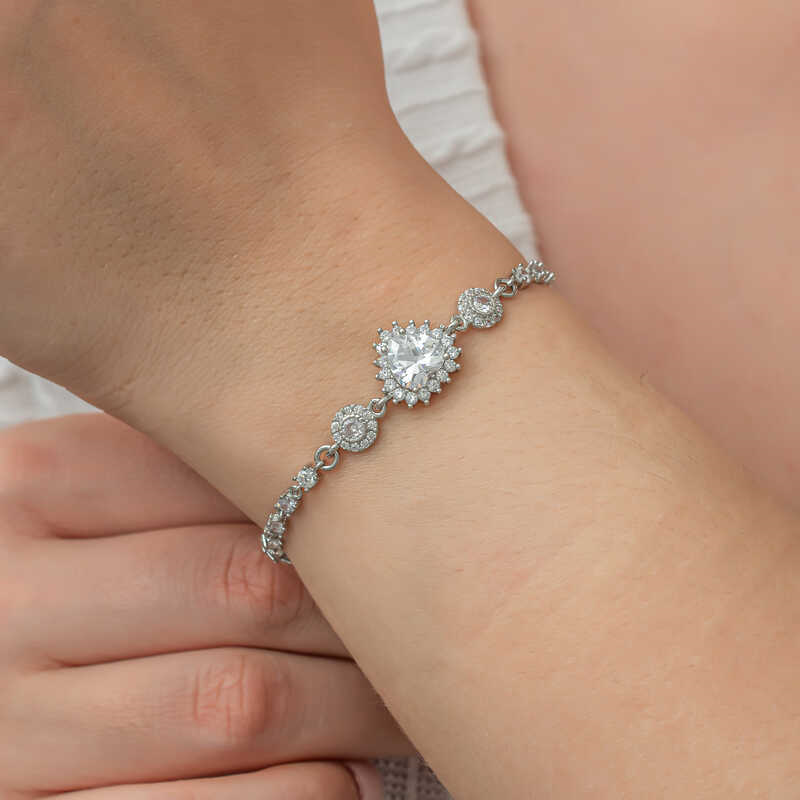 Silver Heart Waterway Women's BraceletYou can have waterway bracelets, which are among the first choices of women who appreciate elegant and simple accessories, in different designs. Designed with fine and meticulous workmanship, you can use waterway bracelets to complete your style in any environment. You can choose waterway bracelets to add sparkle to your outfits and enhance the elegance of your wrist. If you have a simple style, you can add soft sparkle to your outfits with waterway bracelets. If you are looking for a romantic and meaningful gift for your loved ones, these waterway bracelets can be an ideal choice. You can choose this simple and elegant bracelet, which has always been loved, as a birthday gift, Valentine's Day gift or a gift for mothers on special occasions. The silver heart waterway women's bracelet is made of 925 sterling silver. The silver bracelet is rhodium plated. Rhodium plated women's bracelets preserve their shine for a long time and delay oxidation. Like all silver women's bracelet models, this silver waterway women's bracelet is also entirely handmade. Due to silver and precious stones, there may be a ± 10% deviation from the average product weight.Heart Width: 1.20 cmHeart Length: 1.30 cmChain Length: 20 cmAverage Weight: 6.10 gr.