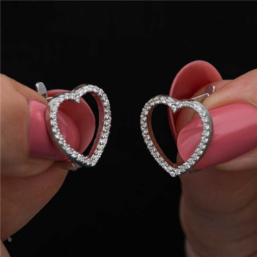 Silver Heart Women's Earrings Let your love come to life on the skin of the woman you love with the heart women's earrings that express love with their heart pattern. This stylish earring model is made of 925 sterling silver. The silver heart women's earrings, which you and your loved ones will enjoy wearing, are a perfect option as a birthday gift, Valentine's Day gift or a gift for mothers on special occasions. The silver is rhodium-plated. Rhodium-plated women's earrings preserve their shine for a long time and oxidation is delayed. The stones on it are zircon. Like all silver women's earrings, the silver heart women's earring is also handmade. Due to silver and precious stones, there may be a ± 10% deviation in the average product weight.Width: 1.50 cmLength: 1.50 cmAverage Weight: 3.40 gr.