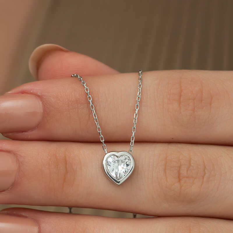 Silver Heart Women's Necklace The heart symbol has always been the symbol of unconditional love and passion. In religious teachings, the power of the heart is limitless. Because the heart is the home of the Creator and our gateway to reality that opens to the universe. This stylish silver heart necklace is a perfect option for a birthday gift, Valentine's Day gift or a gift for mothers on special occasions. The silver heart women's necklace is made of 925 sterling silver. This necklace is rhodium plated. Rhodium plated silver women's necklace models preserve their shine for a long time. The stone on it is zircon. Like all our silver women's necklace models, the silver heart women's necklace model is handmade. Due to silver and precious stones, there may be a ± 10% deviation in the average product weight. Width: 1.80 cm Length: 1.80 cm Average Weight: 2.00 GR. Chain Length: 45 cm