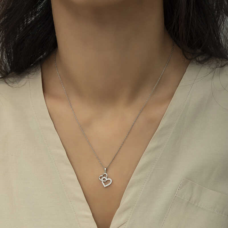 Silver Heart Women's Necklace This wonderfully designed heart necklace model, with part of the heart pattern having stones, is made of 925 sterling silver. Heart-designed necklaces evoke love. Therefore, a silver heart necklace can also be a nice gift option. Zircon stones are used on this necklace. Rhodium plating is used to delay oxidation of the silver and to preserve its shine for a long time. The average length of the completely silver chain is 45 cm. This women's heart necklace model is handmade like other silver women's heart necklace models. Due to silver and precious stones, there may be ± 10% deviation in the average product weight. Width: 1.50 cm Length: 2.10 cm Avg. Weight: 1.90 gr. Chain Length: 45.00 cm