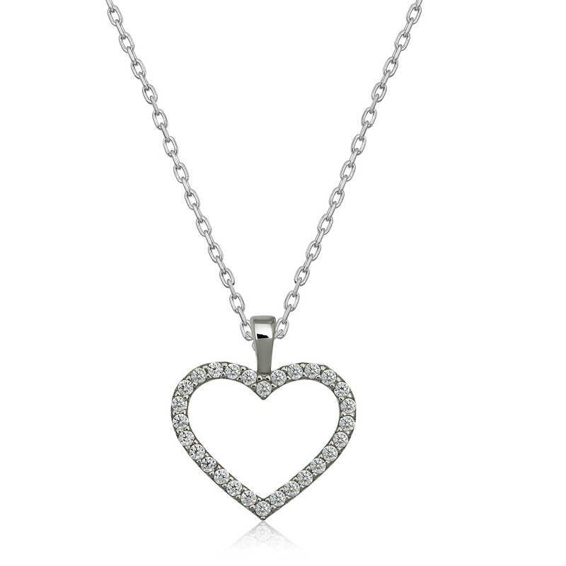 Silver Heart Women's Necklace This wonderfully designed heart necklace model, with all-stone heart pattern, is made of 925 sterling silver. Heart-designed necklaces evoke love. Therefore, a silver heart necklace can also be a nice gift option. Zircon stones are used on this necklace. Rhodium plating is used to delay oxidation of the silver and to preserve its shine for a long time. The average length of the completely silver chain is 45 cm. This women's heart necklace model is handmade like other silver women's heart necklace models. Due to silver and precious stones, there may be ± 10% deviation in the average product weight. Width: 1.50 cm Length: 1.60 cm Avg. Weight: 1.50 gr. Chain Length: 45.00 cm