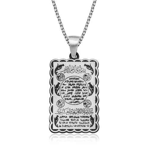 Silver Hilye-i Şerif Necklace Hilya is a decorative art form developed by Ottoman calligraphers in the 17th century. While literal meanings of "ornament," "adornment," and "beauty," hilye also carries meanings such as "form," "adjective," and "creation." A total of eight sections, the hilye consists of four main parts: the "chief position," "navel," "sash," and "skirt." The other four sections serve as complements to the main sections. The chief position; located at the top of the hilye, this section contains the Basmala. The Sash; this section contains a short verse about Muhammad. This verse is usually found in verse 107 of Surah Anbiya, meaning "We sent only as a mercy to the worlds." However, in some hilyahs, the hadith "levlâke levlâk lema halakatu'l-eflâk," meaning "O my beloved, if it were not for you, I would not have created the universe," was also included in this section. The navel is the section where the longest section of the hilyah is placed, and is round or oval. It is the section containing narratives about Muhammad. The skirt is the continuation of the hilyah text that does not fit within the navel. The last line of the text includes the name of the hilyah writer and the date the hilyah was written. The other sections, these four sections outside the main sections, are in the form of four circles around the navel. These four sections, where the four caliphs are mostly written, sometimes include the four names of Muhammad. You can enjoy this necklace with spiritual meaning and gift it to your loved ones. The necklace is made of 925 sterling silver. Oxidized silver is coated. Necklace models with oxidized coating have an authentic appearance. Like all necklaces, the silver Hilye-i Sharif necklace is also handmade. Due to silver and precious stones, there may be ± 10% deviation in product weight. Width: 2.20 cm Length: 3.50 cm Average Weight: 12.50 gr. Chain Length: 55.00 cm