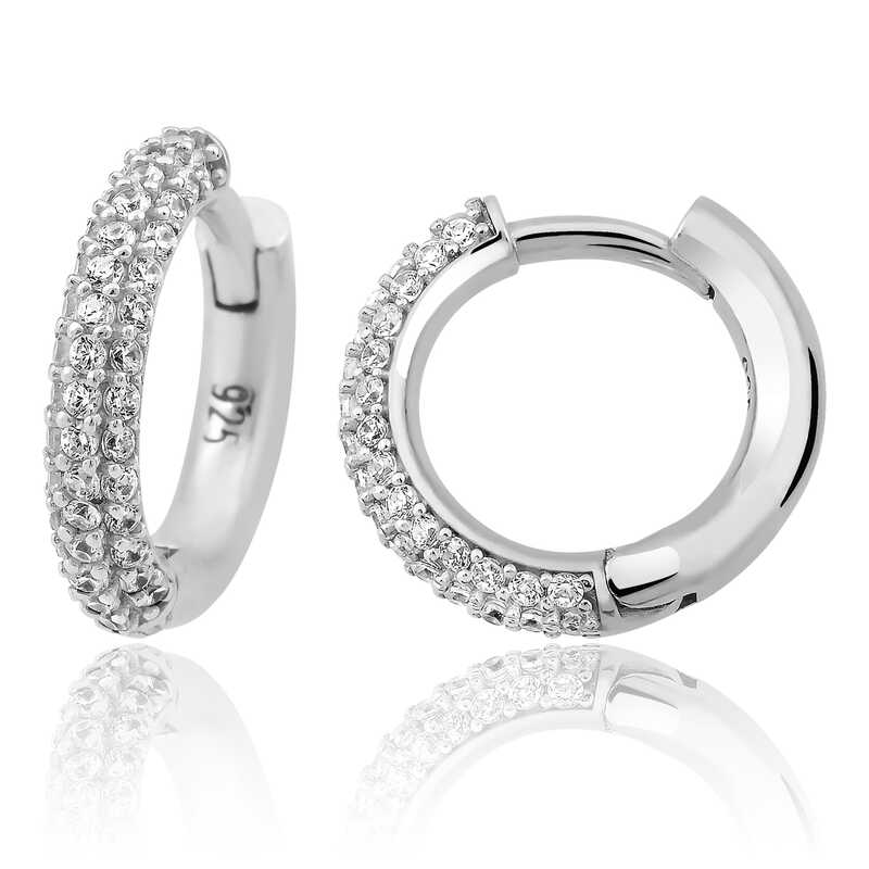 Silver Hoop Earrings for WomenYou will love using this earring, which stands out with its stylish design in everyday life and on special occasions. Appealing to all women, these timeless silver hoop earrings for women are waiting for you. Silver rhodium-plated white stone hoop earrings are a perfect option as a birthday gift, Valentine's Day gift or a gift for mothers on special occasions. Silver earrings are made of 925 sterling silver. Rhodium plating is done on silver. Rhodium-plated silver earring models preserve their shine for a long time and oxidation is delayed. Like all women's earrings, this earring model is produced by hand. Due to silver and precious stones, there may be a ± 10% deviation in the average product weight.Earring Thickness: 0.40 cmEarring Diameter: 1.90 cmAverage Weight: 4.70 gr.