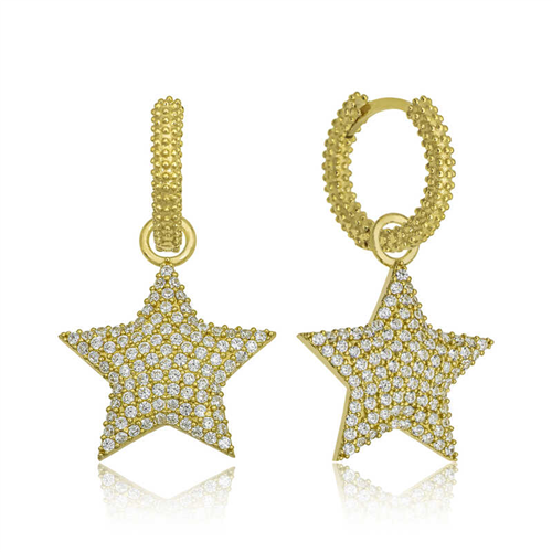 Silver Hoop Star Women's EarringsThe star is an auspicious symbol believed to bring luck in many societies and teachings. It carries the energy of the Planet Venus. The Planet Venus is also the representative of the energy of love and romance. This stylish star earring made of zircon stones is a perfect option for a birthday gift, Valentine's Day gift or for special occasions. Silver and gold zircon stone star women's earrings are made of 925 sterling silver. These earrings are gold plated. Gold plated silver women's earrings preserve their shine for a long time. As with all our silver women's earring models, the silver and gold stone star women's earring model is produced by hand. Due to silver and precious stones, there may be ± 10% deviation in the average product weight. Width: 1.90 cm Length: 3.30 cm Avg. Weight: 5.20 gr.