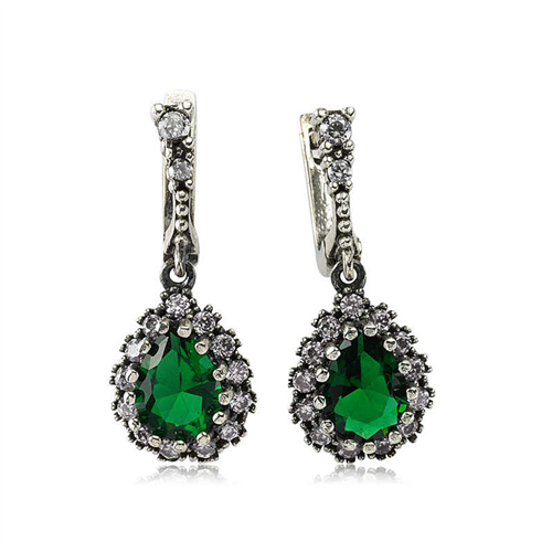 Silver Hürrem Sultan Women's EarringsThe sparkle of silver and emerald green zircon stones will add color to your world and increase your life energy. This earring model with green drop stones, one of Hürrem Sultan's favorite jewelry, is made of 925 sterling silver. The stones on this specially designed earring are zircon. Oxide coating is applied to the silver Hürrem Sultan women's earrings. All silver women's set models coated with oxide gain an antique look. This set, which you and your loved ones will enjoy wearing, is also a very stylish gift option to share your love. As with all our women's silver earring models, the silver Hürrem Sultan women's earring model is handmade. Due to silver and precious stones, there may be ± 10% deviation in the average product weight.Width: 1.00 cm. Height: 3.00 cm. Average Weight: 6.11 Gr