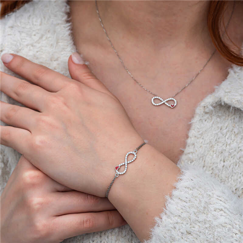 Silver Infinity Red Hearted Women's Set One of the best ways to express your love that will last forever is to gift silver jewelry with a heart-shaped infinity symbol to your beloved. The infinity symbol can be one of the meaningful gifts that can be received on special occasions such as wedding anniversaries or Valentine's Day as a sign of eternal love and loyalty. The heart-shaped infinity women's set is made of 925 sterling silver. Rhodium plated silver. Rhodium plated silver women's set models preserve their shine for a long time and oxidation is delayed. The stones on the set are zircon. Like all women's silver set models, the silver heart-shaped infinity women's set is also produced by hand. Due to silver and precious stones, there may be a ± 10% deviation in the specified product weight. Width: 2.00 cm Length: 0.80 cm Average Weight: 3.40 gr.