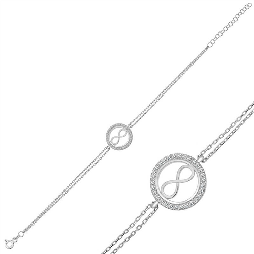 Silver Infinity Women's BraceletIt will be a stylish and meaningful gift that you can show your love to your loved ones, where silver zircon stones and the infinity model come together. This infinity model bracelet is rhodium plated. Rhodium-plated silver women's bracelet models preserve their shine for a long time and oxidation is delayed. Like all women's bracelet models, the silver infinity women's bracelet model is also hand-crafted. Due to silver and precious stones, there may be a ± 10% deviation in the average product weight.Bracelet Width: 1.30 cmBracelet Length: 1.20 cmBracelet Length: 18.50 cmAverage Weight: 1.70 gr.