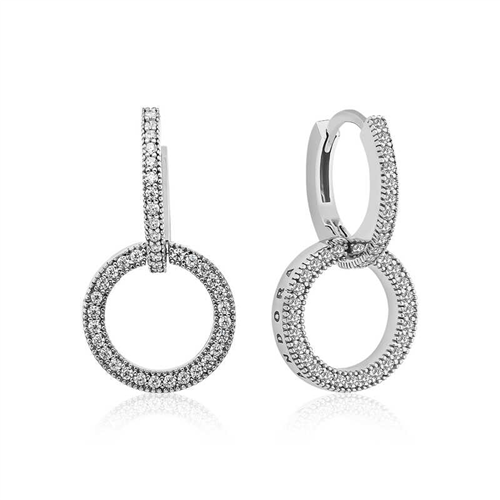Silver Interlocking Hoop Earrings for WomenFrom minimalist models suitable for daily use to more flamboyant designs that will complement your outfits at events, silver earrings are always with you. Sparkling interlocking rings make being paired better than being single. You will definitely find the right earring for both you and your loved ones in this collection. This stylish interlocking hoop earring is made of 925 sterling silver. Rhodium plated silver. Rhodium plated products preserve their shine for a long time. Like all women's earrings, the silver interlocking hoop earrings for women are also handmade. Due to silver and precious stones, there may be ± 10% deviation in product weight.Width: 2.50 cmLength: 1.50 cmAvg. Weight: 5.60 gr.