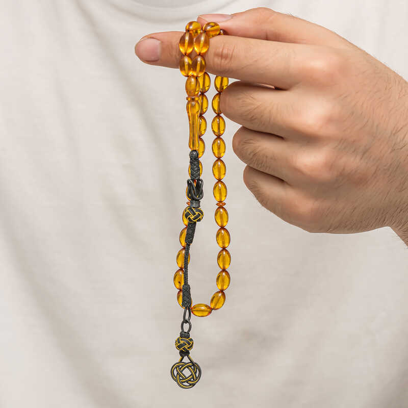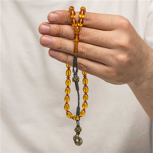 Silver Kazaz Tasseled Pressed Amber Prayer Beads Amber is a substance formed by the accumulation of pine tree resin underground over many years. It is almost the same hardness as stone, but its density is lower. It emits a pine scent. It is a valuable substance because its formation takes a long time and cannot be made artificially. Pressed amber, on the other hand, is a material that bears the characteristics of amber, resembles it in appearance but is not real. Various materials have been produced from amber in our country and in many parts of the world. Prayer beads are the most commonly produced in our country. Amber prayer beads give off an amber-like scent and change color as they are warmed in the hand. They come in many colors. There are even amber prayer beads that are a combination of two colors. They are usually used with a silver tassel or can be used systematically. Our country's distinguished rosary masters frequently craft this material to create various works of art. These rosaries are also bought and sold by collectors. The 1000-karat silver-plated amber rosary with a tassel is a very elegant rosary suitable for everyday use. A must-have gift for special occasions, these amber rosaries are a perfect gift for men on special occasions like birthdays, Valentine's Day, and Father's Day. The silver tasseled squeezed amber prayer beads model is manufactured entirely by hand, as are other amber prayer beads models. Bead Width: 0.80 cm Bead Length: 1 cm Prayer Length: 32 cm Average Weight: 19.00 gr