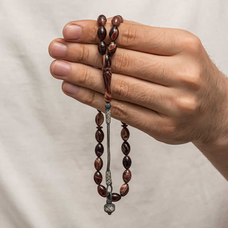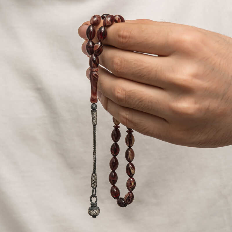 Silver Kazaz Tasseled Pressed Amber Prayer Beads Amber is a substance formed by the accumulation of pine tree resin underground over many years. It is almost the same hardness as stone, but its density is lower. It emits a pine scent. It is a valuable substance because its formation takes a long time and cannot be made artificially. Pressed amber, on the other hand, is a material that bears the characteristics of amber, resembles it in appearance but is not real. Various materials have been produced from amber in our country and in many parts of the world. Prayer beads are the most commonly produced in our country. Amber prayer beads give off an amber-like scent and change color as they are warmed in the hand. They come in many colors. There are even amber prayer beads that are a combination of two colors. They are usually used with a silver tassel or can be used systematically. Our country's distinguished rosary masters frequently craft this material to create various works of art. These rosaries are also bought and sold by collectors. The 1000-karat silver-plated amber rosary with a tassel is a very elegant rosary suitable for everyday use. A must-have gift for special occasions, these amber rosaries are a perfect gift for men on special occasions like birthdays, Valentine's Day, and Father's Day. The amber rosary model with silver tassels is manufactured entirely by hand, as are other amber rosary models. Bead Width: 0.80 cm Bead Length: 1 cm Prayer Length: 30 cm Average Weight: 16 gr