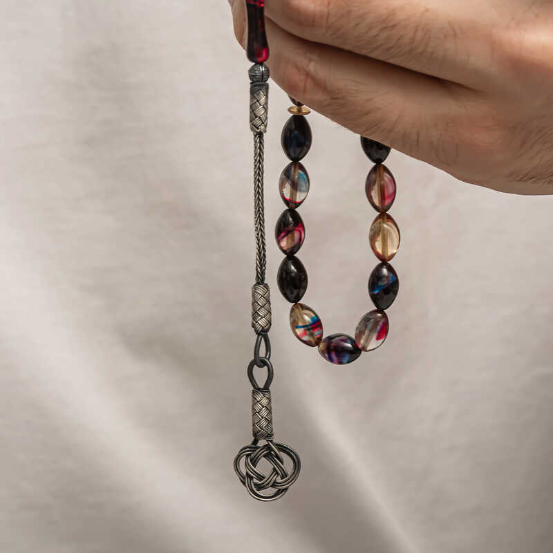 Silver Kazaz Tasseled Pressed Amber Prayer Beads Amber is a substance formed by the accumulation of pine tree resin underground over many years. It is almost the same hardness as stone, but its density is lower. It emits a pine scent. It is a valuable substance because its formation takes a long time and cannot be made artificially. Pressed amber, on the other hand, is a material that bears the characteristics of amber, resembles it in appearance but is not real. Various materials have been produced from amber in our country and in many parts of the world. Prayer beads are the most commonly produced in our country. Amber prayer beads give off an amber-like scent and change color as they are warmed in the hand. They come in many colors. There are even amber prayer beads that are a combination of two colors. They are usually used with a silver tassel or can be used systematically. Our country's distinguished rosary masters frequently craft this material to create various works of art. These rosaries are also bought and sold by collectors. The 1000-karat silver-plated amber rosary with a tassel is a very elegant rosary suitable for everyday use. A must-have gift for special occasions, these amber rosaries are a perfect gift for men on special occasions like birthdays, Valentine's Day, and Father's Day. The amber rosary model with silver tassels is manufactured entirely by hand, as are other amber rosary models. Bead Width: 0.80 cm Bead Length: 1 cm Prayer Length: 30 cm Average Weight: 16 gr