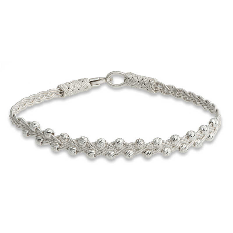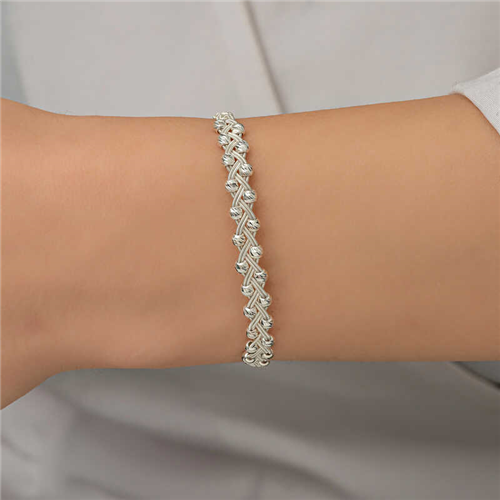 Silver Kazaziye Knit Bracelet Kazaziye, kazazlık or kazaz; is a handicraft made from pure silver wires using knitting techniques. It is used in prayer beads and can also be made as a bracelet or necklace. The knitted Kazaziye bracelet is completely handmade. For those who want to achieve a stylish look, the Kazaziye knit bracelet that will never go out of style is waiting for you. The silver knitted Kazaziye bracelet is a perfect option for a birthday gift, a Valentine's Day gift or for special occasions. The silver bracelet is made of 1000 carat pure silver and is 100% handcrafted. The silver is oxidized coated. Due to silver and precious stones, there may be a ± 10% deviation in the average product weight. Width: 0.60 cm Length: 19 cm Average Weight: 5.60 gr.