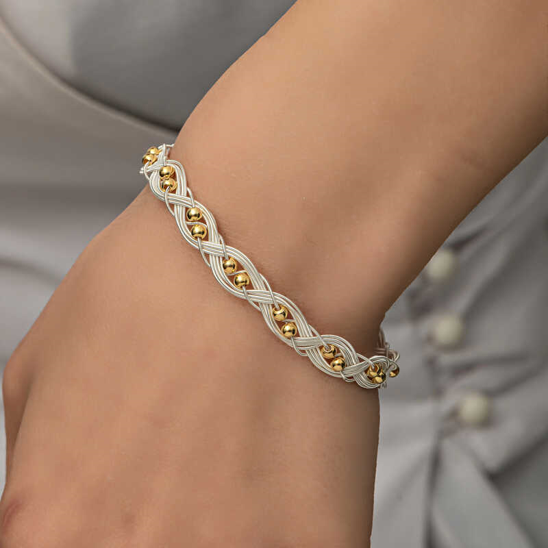 Silver Kazaziye Knitted BraceletKazaziye, kazazlık or kazaz; is a handicraft made from pure silver wires using knitting techniques. It is used in prayer beads and can also be made as a bracelet or necklace. The knitted Kazaziye bracelet is completely handmade. For those who want to achieve a stylish look, the timeless Kazaziye knitted bracelet is waiting for you. The silver knitted Kazaziye bracelet is a perfect option for a birthday gift, a Valentine's Day gift or for special occasions. The silver bracelet is made of 1000 carat pure silver and is 100% handcrafted. The silver is oxidized. Due to silver and precious stones, there may be a ± 10% deviation in the average product weight.Width: 0.80 cmLength: 19 cmAverage Weight: 7.60 gr.