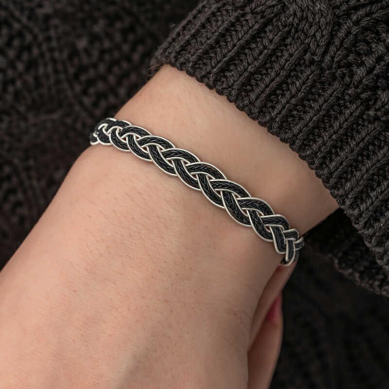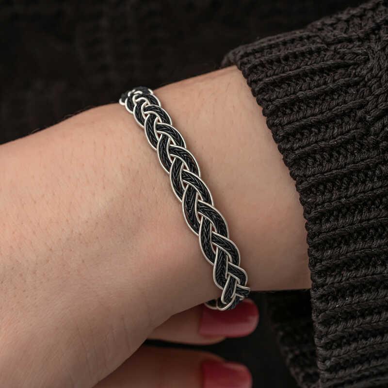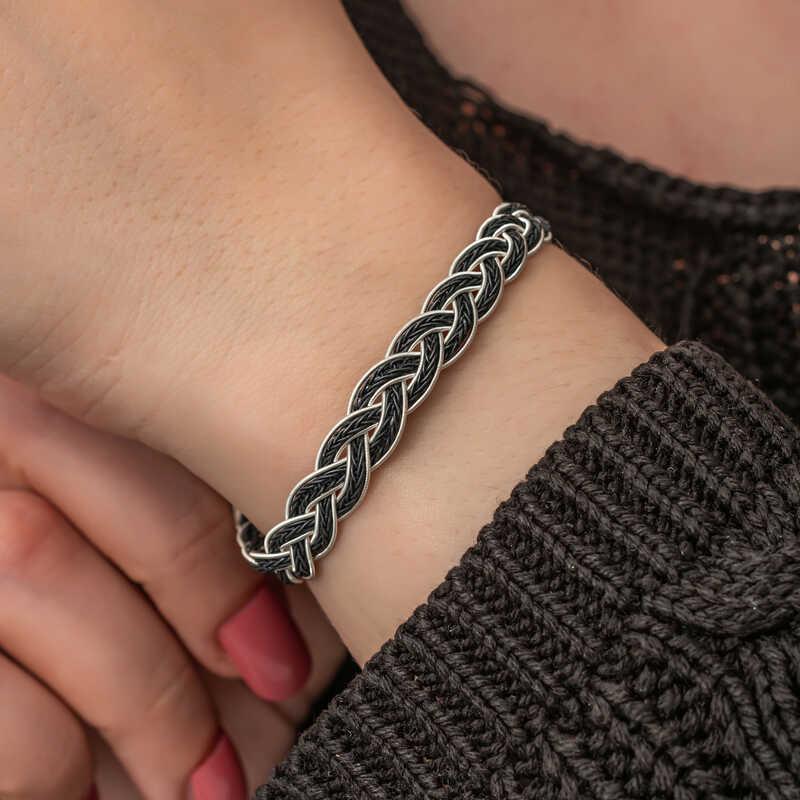 Silver Kazaziye Knitted BraceletKazaziye, kazazlık or kazaz; is a handicraft made from pure silver wires using knitting techniques. It is used in prayer beads and can also be made as a bracelet or necklace. The knitted Kazaziye bracelet is completely handmade. For those who want to achieve a stylish look, the timeless Kazaziye knitted bracelet is waiting for you. The silver knitted Kazaziye bracelet is a perfect option for a birthday gift, a Valentine's Day gift or for special occasions. The silver bracelet is made of 1000 carat pure silver and is 100% handcrafted. The silver is oxidized. Due to silver and precious stones, there may be a ± 10% deviation in the average product weight.Width: 0.80 cmLength: 19.00 cmAverage Weight: 9.50 gr.