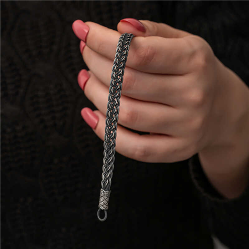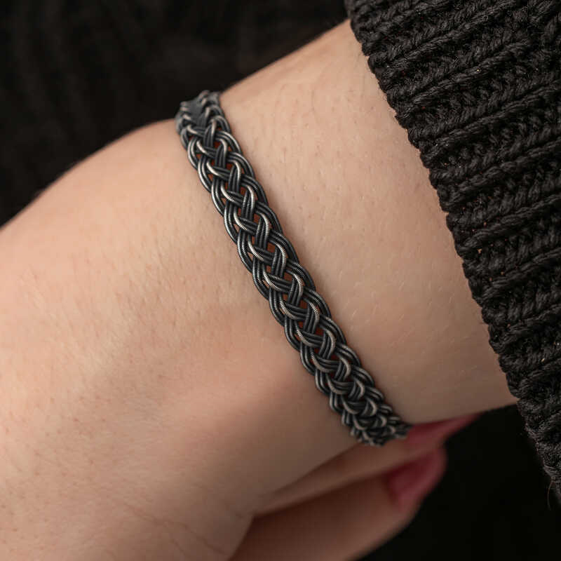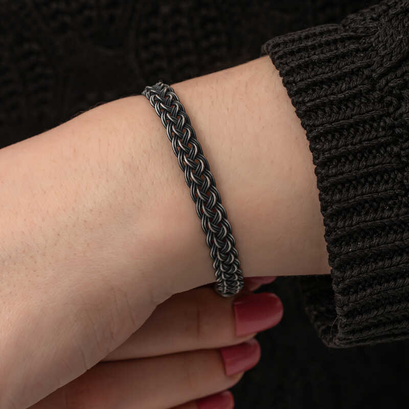 Silver Kazaziye Knitted BraceletKazaziye, kazazlık or kazaz; is a handicraft made from pure silver wires using knitting techniques. It is used in prayer beads and can also be made as a bracelet or necklace. The knitted Kazaziye bracelet is completely handmade. For those who want to achieve a stylish look, the timeless Kazaziye knitted bracelet is waiting for you. The silver knitted Kazaziye bracelet is a perfect option for a birthday gift, a Valentine's Day gift or for special occasions. The silver bracelet is made of 1000 carat pure silver and is 100% handcrafted. The silver is oxidized. Due to silver and precious stones, there may be a ± 10% deviation in the average product weight.Width: 0.70 cmLength: 19.00 cmAverage Weight: 8.20 gr.