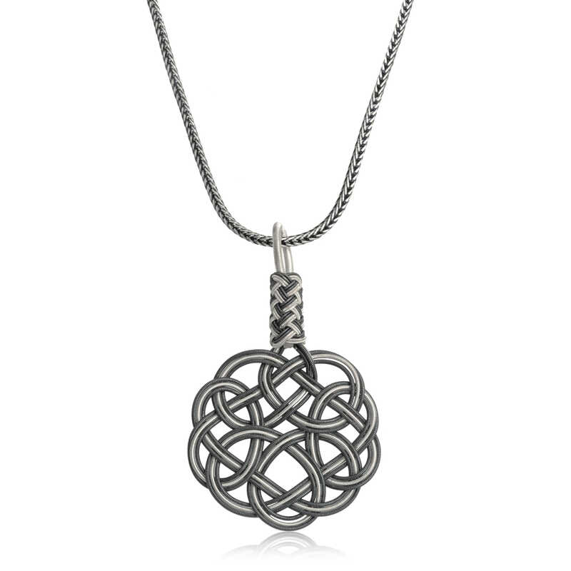 Silver Kazaziye Knitted Women's Necklace Kazaziye, kazazlık or kazaz; is a handicraft made from pure silver wires using knitting techniques. It is used in prayer beads and can also be made as a bracelet or necklace. A knitted Kazaziye necklace is completely handmade. For those who want to achieve a stylish look, the Kazaziye knitted necklace that will never go out of style is waiting for you. A silver knitted Kazaziye necklace is a perfect option for a birthday gift, Valentine's Day gift or for special occasions. The silver necklace is made of 1000 carat pure silver and is 100% handcrafted. The silver is oxidized. Due to silver and precious stones, there may be a ± 10% deviation in the average product weight. Necklace Width: 2.60 cm Necklace Length: 4.20 cm Chain Length: 55 cm Average Weight: 10.00 gr.