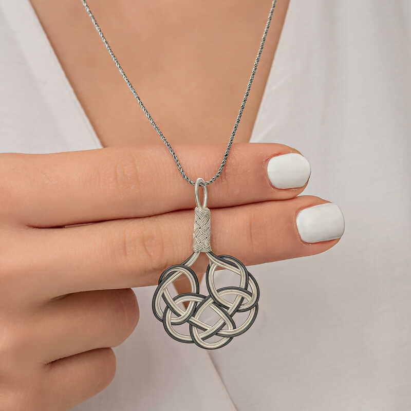 Silver Kazaziye Knitted Women's Necklace Kazaziye, kazazlık or kazaz; is a handicraft made from pure silver wires using knitting techniques. It is used in prayer beads and can also be made as a bracelet or necklace. The knitted Kazaziye bracelet is completely handmade. For those who want to achieve a stylish look, the Kazaziye knitted necklace that will never go out of style is waiting for you. The silver knitted Kazaziye necklace is a perfect option for a birthday gift, Valentine's Day gift or for special occasions. The silver necklace is made of 1000 carat pure silver and is 100% handcrafted. The silver is oxidized coated. Due to silver and precious stones, there may be a ± 10% deviation in the average product weight. Necklace Width: 2.60 cm Necklace Length: 4.20 cm Chain Length: 55 cm Average Weight: 5.50 gr.