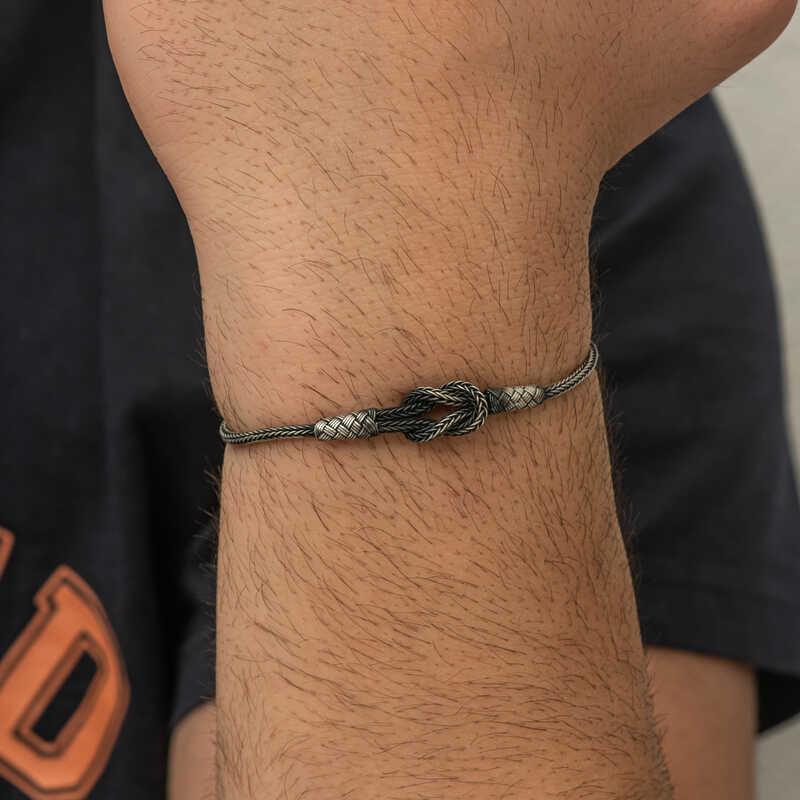 Silver Kazaziye Düğüm Bracelet is a hand art made by using knitting techniques from the pure silver wires. The bracelet is also made as a pendant, as it is used in Tespihs. The knot crash bracelet is completely the eye of labor. In the event that appeals to those who want to catch a stylish look, the film bracelet will not pass fashion is waiting for you. Silver node crash bracelet is an excellent option that can be preferred in birthday gifts, Valentines day gifts or special days. Silver wristband 1000 adjustment is made of pure silver percent handcraft. oxide coating on silver is made. Due to silver and precious stones, the average product weight specified can be ± 10% deviation. Size : 18.00 cm Weight : 5 gr.