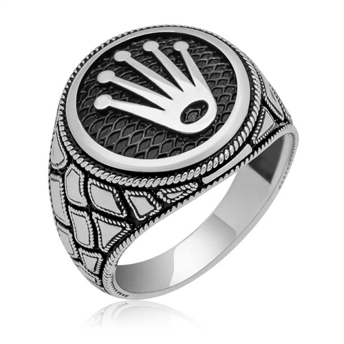 Silver King Crown Men's RingHow about showing your loved ones that they are the crown of your head? Inspired by the elegance of the king's crown, you can choose this stylish ring in everyday life, on special occasions and nights, and you can love wearing this ring model that reminds you of stars with its sparkling appearance. This silver ring model is waiting for you for those who want to achieve a stylish look. Silver king crown ring is a perfect option for special occasions such as birthday gifts or Valentine's Day gifts. This ring model is made of 925 sterling silver. Oxidized silver is coated. Oxidized silver men's rings preserve their shine for a long time and delay tarnishing. Like all silver ring models, the silver king crown ring model is produced entirely by hand. Due to silver and precious stones, there may be a ± 10% deviation in the average product weight.Ring Width: 2.20 cmRing Length: 2.50 cmAverage Weight: 9.00 gr.