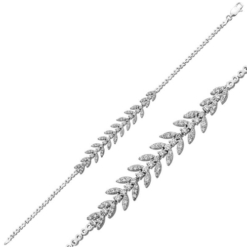 Silver Leaf Waterway Women's BraceletYou can have waterway bracelets, which are among the first choices of women who appreciate elegant and simple accessories, in different designs. Designed with fine and meticulous workmanship, you can use leaf waterway bracelets to complete your style in any environment. You can choose waterway bracelets to add sparkle to your outfits and enhance the elegance of your wrist. If you have a simple style, you can add soft sparkle to your outfits with waterway bracelets. If you are looking for a romantic and meaningful gift for your loved ones, these leaf waterway bracelets can be an ideal choice. This simple and elegant bracelet, which has always been loved, can be preferred as a birthday gift, Valentine's Day gift or a gift for mothers on special occasions. Silver leaf waterway women's bracelet is made of 925 sterling silver. Rhodium plated on the silver bracelet. Rhodium plated women's bracelets preserve their shine for a long time and delay oxidation. Like all silver women's bracelet models, this silver leaf waterway women's bracelet is also entirely handmade. Due to silver and precious stones, there may be a ± 10% deviation from the average product weight.Width: 1.00 cmLength: 18.30 cmAverage Weight: 6.35 gr.