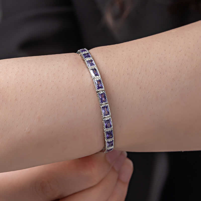 Silver Lilac Stone Waterway Women's BraceletYou will love using this bracelet, which reminds you of stars with its sparkling stones, in everyday life, special occasions and nights. This timeless silver bracelet with stones awaits you, appealing to those who want to achieve a stylish look. Silver lilac stone waterway women's bracelet is a perfect option for a birthday gift, Valentine's Day gift or as a gift for mothers on special occasions. Silver lilac stone waterway women's bracelet is made of 925 sterling silver. Rhodium plated silver. Rhodium plated women's bracelet preserves its shine for a long time and oxidation is delayed. As with all bracelets, the silver lilac stone waterway women's bracelet is handmade. Due to silver and precious stones, there may be ± 10% deviation from the average product weight.Width: 0.40 mmBracelet Length: 19 cmAvg. Weight: 12 g.