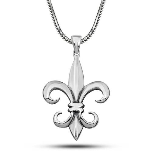Silver Lily Flower Men's Necklace The symbol of elegance and power together. The Silver Lily Flower Men's Necklace adds character to your style with its noble stance and elegant design. The lily flower has symbolized purity, nobility and rebirth throughout history. This necklace is specially designed for those who want to add originality to their men's style. Made of 925 sterling silver, the necklace is an ideal accessory for both daily use and special moments with its detailed workmanship and durable structure. While it offers a vintage touch thanks to its oxidized surface, the strong expression of the lily motif reflects your character. Oxidized silver is coated. Oxidized silver necklaces preserve their shine for a long time and oxidation is delayed. All of our products are handmade. Due to silver and precious stones, there may be a ± 10% deviation in the average product weight. Product Width: 3.00 cm Product Length: 5.00 cm. Chain Length: 55.00 cm. Average Weight: 16.20 gr.