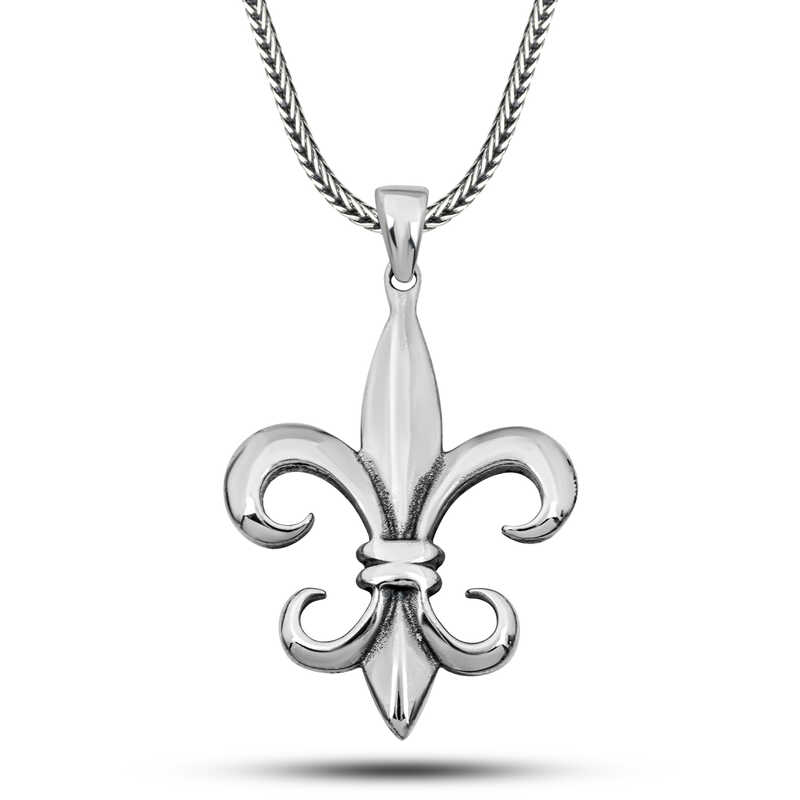 Silver Lily Flower Men's Necklace The symbol of elegance and power together. The Silver Lily Flower Men's Necklace adds character to your style with its noble stance and elegant design. The lily flower has symbolized purity, nobility and rebirth throughout history. This necklace is specially designed for those who want to add originality to their men's style. Made of 925 sterling silver, the necklace is an ideal accessory for both daily use and special moments with its detailed workmanship and durable structure. While it offers a vintage touch thanks to its oxidized surface, the strong expression of the lily motif reflects your character. Oxidized silver is coated. Oxidized silver necklaces preserve their shine for a long time and oxidation is delayed. All of our products are handmade. Due to silver and precious stones, there may be a ± 10% deviation in the average product weight. Product Width: 3.00 cm Product Length: 5.00 cm. Chain Length: 55.00 cm. Average Weight: 16.20 gr.