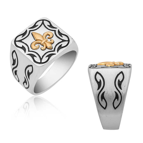Silver Lily Flower Patterned Men's RingThis elegant symbol, paired with white and representing concepts such as cleanliness, abundance and purity, has been used by many societies of different religions throughout thousands of years of history. It is seen on crowns, scepters, thrones, seals, coins and other objects made in the Greek, Roman, German, English, Spanish, Egyptian, Syrian and Babylonian civilizations. The Ottomans liked this symbol, which they saw during the Mohács campaign, and used it with slightly modified versions. Examples can be seen at the 2nd gate of Topkapı Palace, the mihrab of the Milet İlyas Bey Mosque, and the Rizvaniye Mosque in Urfa. According to Ho'oponopono, a Hawaiian teaching, the lily flower is an important purification tool related to constant struggle. Therefore, it is an opportunity not to be missed to remind you of the need to purify and to support you on your path. This designed ring is made of 925 sterling silver. As with all silver products, the silver lily flower patterned men's ring is also produced entirely by hand. Due to silver and precious stones, there may be ± 10% deviation from the average product weight specified.Width: 1.70 cmHeight: 1.70 cmAverage Weight: 10.69 gr.