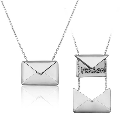 Silver Lover's Letter Women's Necklace The silver necklace with a letter from the lover, which can appeal to every taste with its rhodium color, is made of 925 sterling silver and has a high standard of quality. The silver necklace, consisting of a letter design attached to a small envelope with an elegant chain, is a very preferable product for women. The silver necklace, which you can have a note or name engraved inside, impresses with its workmanship and quality. You can also choose as a tasteful gift to make your loved ones happy on special occasions, and you can enhance your own elegance with the silver lover's letter necklace. You will be able to carry your loved ones in your heart and their names around your neck thanks to the necklace that you will carry around your neck as a manifestation of your love. Note: Returns cannot be accepted for products with names written on them. The product will be sent in a gift box... All of our products are handmade. Due to silver and precious stones, there may be a ± 10% deviation in product weight. Width: 1.70 cm Length: 1.20 cm Weight: 3.50 gr.