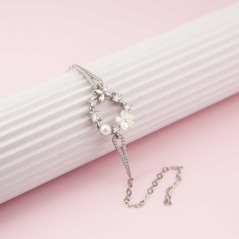 Silver Magnolia Flower Butterfly Women's Bracelet The most special and elegant way to express your feelings to your loved ones is with stylish, colorful and fragrant flowers that you can send her. Flowers, which are among the gifts to be given on special occasions, this time find meaning with a silver bracelet. The silver flower women's bracelet, crafted with the highest quality, brightest, and most sparkling stones, is waiting for those who want to express their love once again, for those who want to say "you are a flower." This specially designed silver magnolia flower butterfly women's bracelet is made of 925 sterling silver. Rhodium plated silver. Rhodium plated silver women's bracelet models preserve their shine for a long time and oxidation is delayed. The white stone on the bracelet is zircon. Like all women's silver bracelet models, the silver magnolia flower women's bracelet is also handmade. Due to silver and precious stones, there may be a ± 10% deviation in the specified product weight. Width: 1.90 cm Height: 2.00 cm Bracelet Chain Length: 20 cm Weight: 3.30 gr.