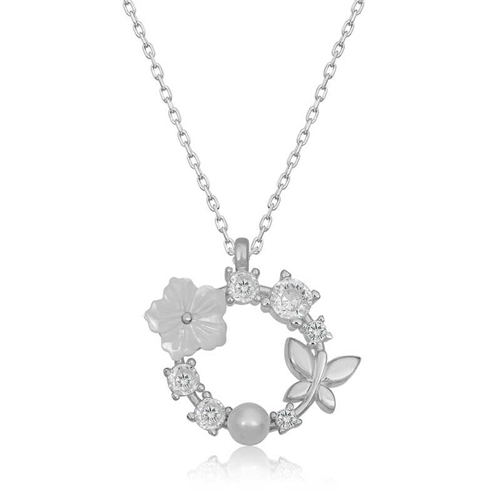 Silver Magnolia Flower Butterfly Women's Necklace The most special and elegant way to express your feelings to your loved ones is to send her stylish, colorful and fragrant flowers. Flowers, which are among the gifts to be given on special occasions, this time found meaning with a silver necklace. The silver flower women's necklace crafted with the highest quality, brightest, and most sparkling stones is waiting for those who want to express their love once again, for those who want to say "you are a flower." This specially designed silver magnolia flower butterfly women's necklace is made of 925 sterling silver. Rhodium plated silver. Rhodium plated silver women's necklace models preserve their shine for a long time and oxidation is delayed. The white stone on the necklace is zircon. The average silver chain length is 45 cm. Like all women's silver necklace models, the silver magnolia flower women's necklace is also handmade. Due to silver and precious stones, there may be a ± 10% deviation in the specified product weight. Width: 1.80 cm Length: 2.00 cm Weight: 3.60 gr.