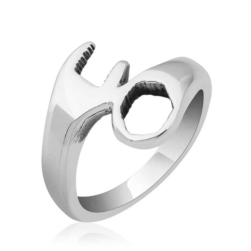 Silver Mechanic's Wrench Men's RingThe tools we use in our daily lives are like keys that unlock abilities that would be impossible without them. A wrench is a perfect example, because without it, it would be impossible to create solutions to many of the problems people take for granted. The wrench associates power with solid intelligence, and the desire to repair what is broken. Designed with all of these in mind, the wrench ring embodies the meanings you want to convey to people. If you want to go beyond the ordinary and make yourself felt, the Mechanic's Wrench ring is perfect for you. Like all our silver products, the silver Mechanic's Wrench men's ring is entirely handmade. This magnificent ring is made of 925 sterling silver. The silver is rhodium plated. Due to silver and precious stones, there may be a ± 10% deviation in the average product weight.Width: 1.50 cmLength: 1.70 cmAverage Weight: 7.44 gr.
