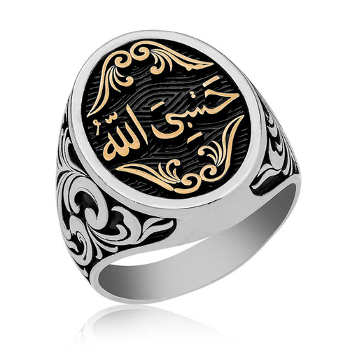 Silver Men's Ring with Arabic Hasbiyallah Written Hasbiyallah means Allah is sufficient for me. Hasbunallah means Allah is sufficient for us, it is sufficient. When they were throwing Abraham (peace be upon him) into the fire, he said (Hasbiyallah wa nimal wakil). That is, he said (Allah is sufficient for me, He is the Best Helper). There is nothing to trust in or take as a friend other than Allah. Taking refuge in anyone other than Allah has been likened to taking refuge in a spider's web. It is purported in the Quran: (The example of those who take friends other than Allah is like that of a spider which makes its nest. And the rottest of houses is the spider's nest. If only they knew.) [Ankebut 41] You can carry this ring, which has spiritual value, with you at all times and gift it to your loved ones on special occasions. This stylish men's ring is made of 925 sterling silver. Oxide coating has been applied to the silver. Oxide coating gives rings an authentic look. Like all men's rings, the silver men's ring with Arabic Hasbiyallah writing is handmade. Due to silver and precious stones, there may be a ± 10% deviation from the average product weight. Width: 2.00 cm Length: 2.20 cm Average Weight: 14.25 gr.