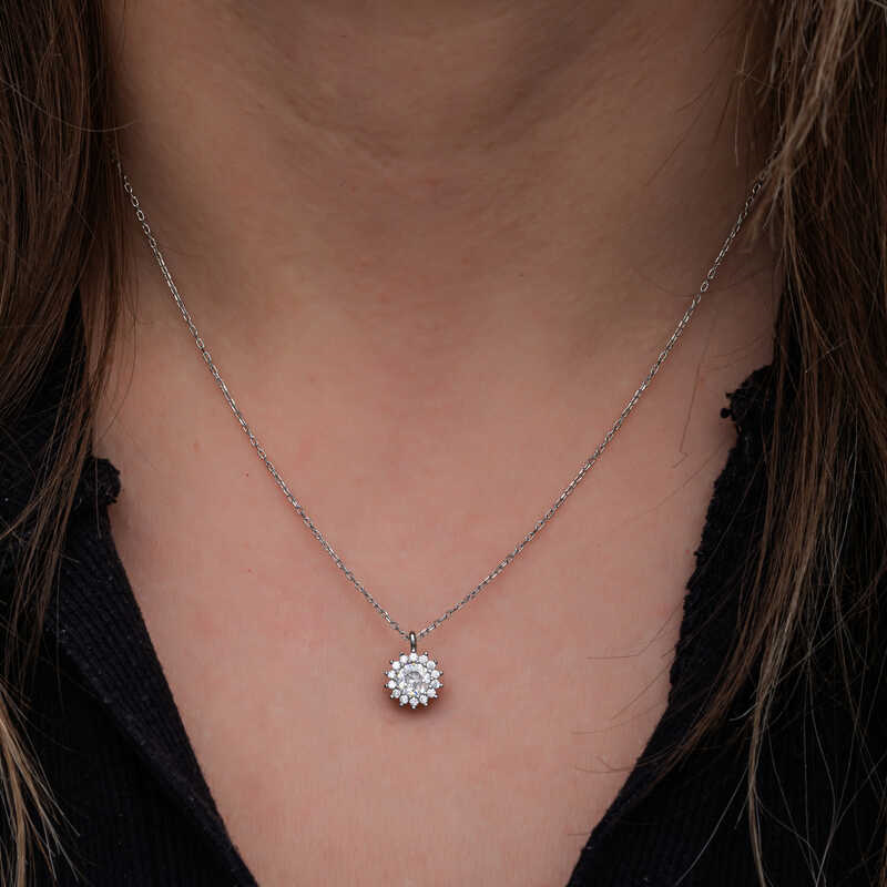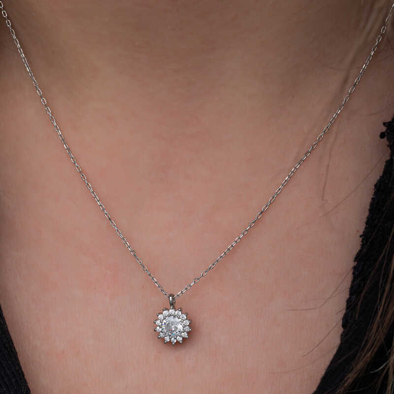 Silver Minimal Round Anturage Women's Necklace This women's necklace model, made of zircon stone on silver, is a stylish accessory that you can use at any time of the day. You can gift this necklace to yourself or your loved ones on your birthday, Mother's Day or special occasions. Minimal round anturage women's necklace model is made of 925 sterling silver. Rhodium plated silver. Rhodium plated silver women's necklace models preserve their shine for a long time. As with all women's necklaces, the silver round anturage women's necklace model is also handmade. Due to silver and precious stones, there may be ± 10% deviation in the average product weight. Necklace Diameter: 0.90 cm Chain Length: 45 cm Avg. Weight: 1.80 gr.